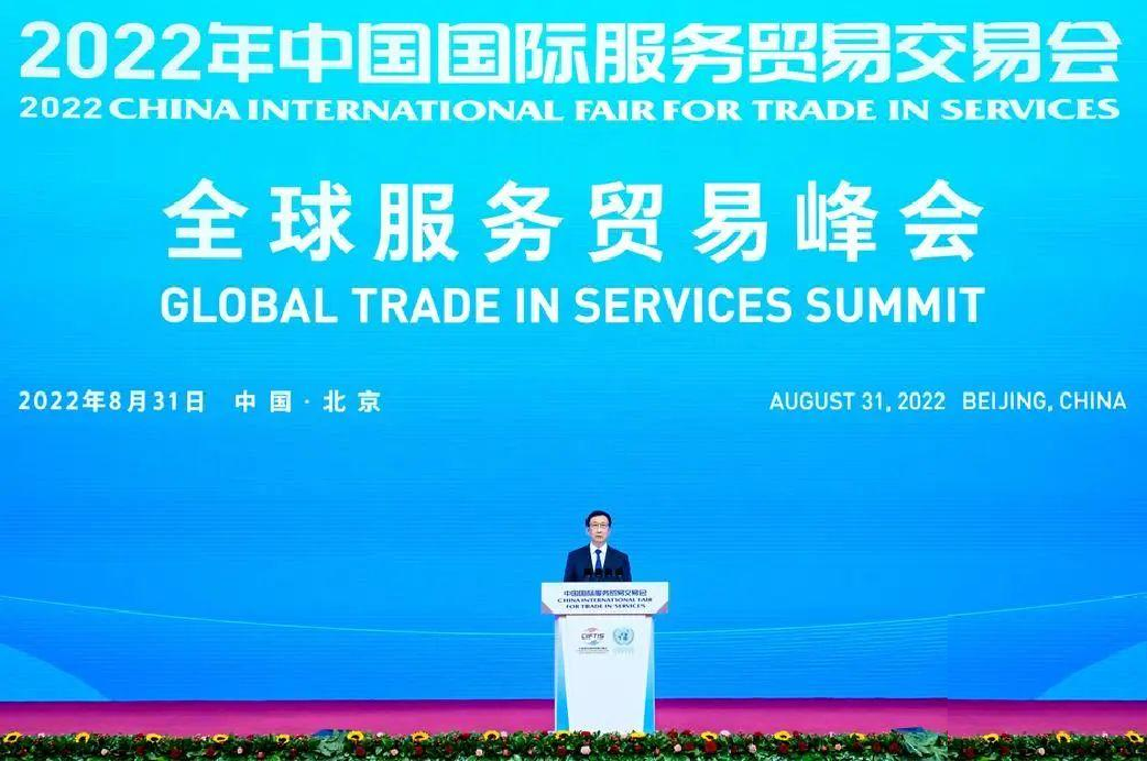 中共中央政治局常委、國(guó)務(wù)院副總理韓正出席2022年中國(guó)國(guó)際服務(wù)貿(mào)易交易會(huì)全球服務(wù)貿(mào)易峰會(huì)并發(fā)表主旨演講。