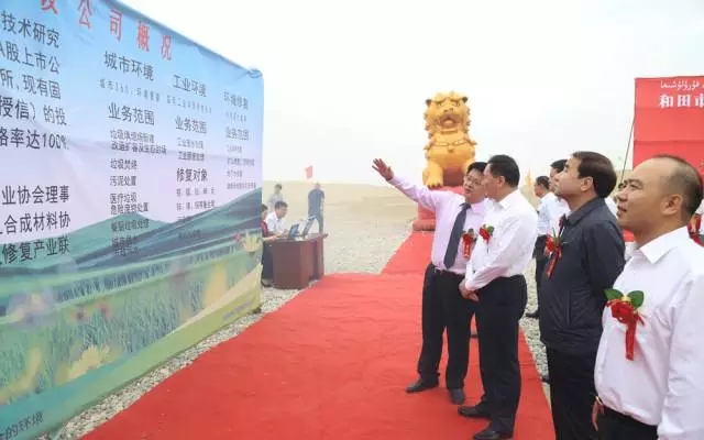 隨后,來(lái)自和田地委、市委、北京援疆指揮部和高能環(huán)境的相關(guān)領(lǐng)導(dǎo)共同啟動(dòng)觸摸球并為項(xiàng)目奠基培土。